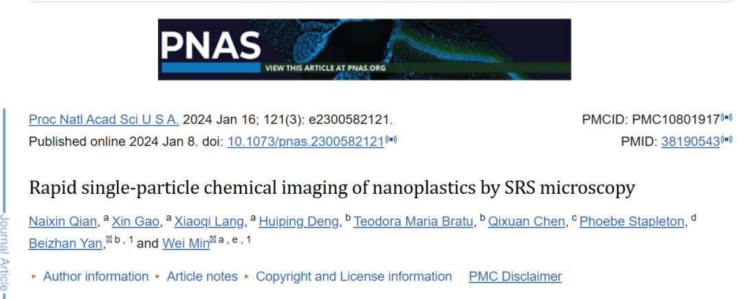 [2] Qian N, Gao X, Lang X, et al. Rapid single-particle chemical imaging of nanoplastics by SRS microscopy. Proc Natl Acad Sci U S A. 2024;121(3):e2300582121. doi:10.1073/pnas.2300582121