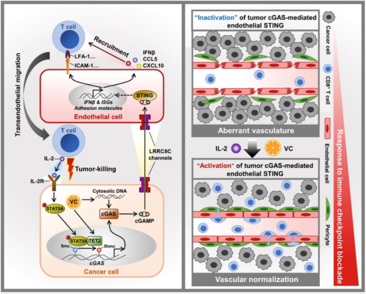 肿瘤中TET2-STAT5A-cGAS-内皮STING轴的活化介导了维生素C诱导的血管正常化和免疫细胞浸润