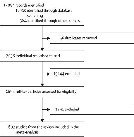 研究人员首先彻底搜索了 Web of Science、PubMed 和 Scopus 等七个数据库,并找到了所有将全因死亡率作为结果指标、教育年限作为独立变量的研究。他们检索了自1980年1月1日至2023年6月16日的所有论文。最终确定了17 094条记录,其中603条符合分析条件,包括来自59个国家70个地点的数据,生成了包含10 355个观测值的最终数据集。