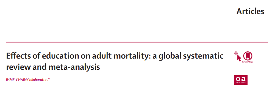 2. IHME-CHAIN Collaborators. “Effects of education on adult mortality: a global systematic review and meta-analysis.” The Lancet. Public health vol. 9,3 (2024): e155-e165. doi:10.1016/S2468-2667(23)00306-7