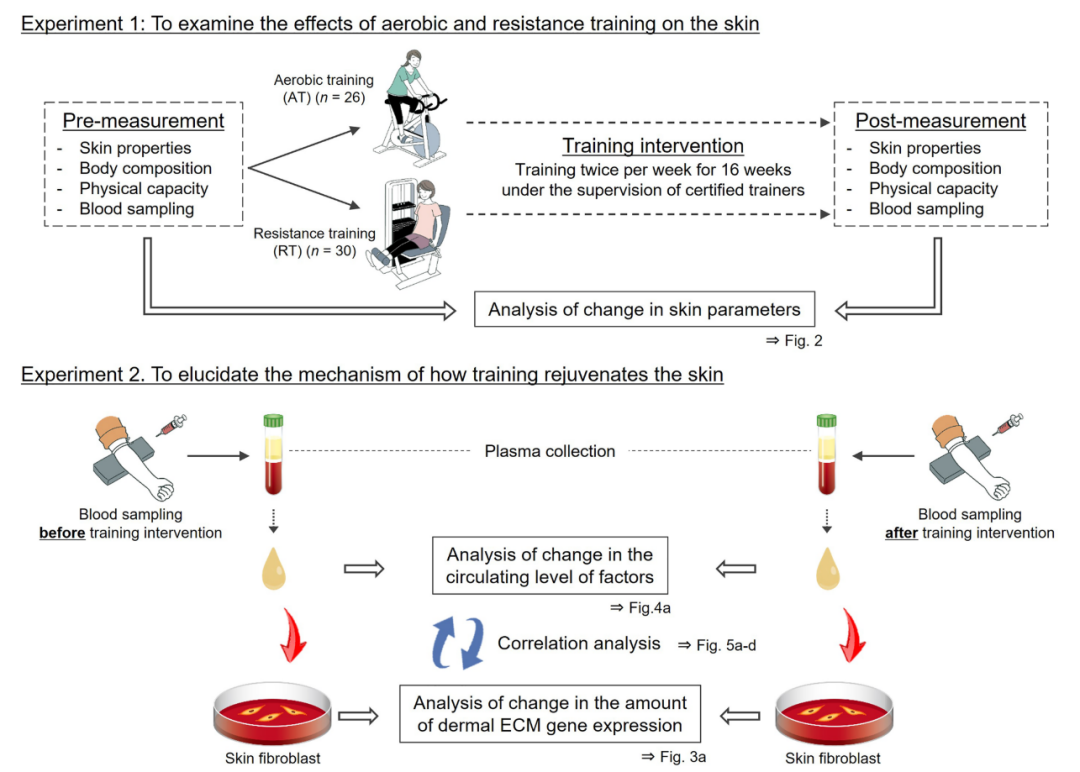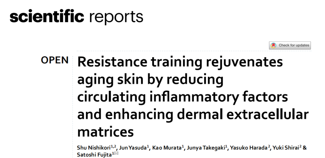 Nishikori S, Yasuda J, Murata K, et al. Resistance training rejuvenates aging skin by reducing circulating inflammatory factors and enhancing dermal extracellular matrices. Sci Rep. 2023;13(1):10214. Published 2023 Jun 23. doi:10.1038/s41598-023-37207-9