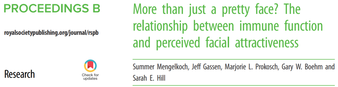 1. Mengelkoch, Summer et al. “More than just a pretty face? The relationship between immune function and perceived facial attractiveness.” Proceedings. Biological sciences vol. 289,1969 (2022): 20212476. doi:10.1098/rspb.2021.2476