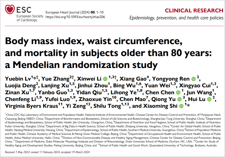 [1] Lv Y, Zhang Y, Li X, et al. Body mass index, waist circumference, and mortality in subjects older than 80 years: a Mendelian randomization study. Eur Heart J. 2024 Apr 16:ehae206.