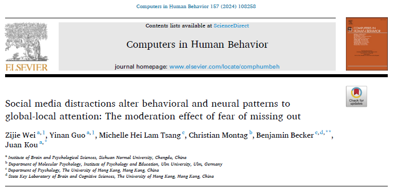[2] Wei, Zijie, et al. "Social media distractions alter behavioral and neural patterns to global-local attention: The moderation effect of fear of missing out." Computers in Human Behavior 157 (2024): 108258.