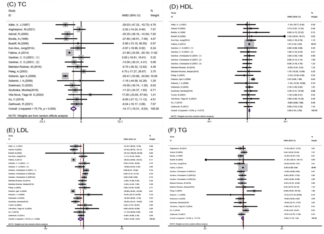 研究人员进一步分析17项研究(19种效应量),他们发现,大蒜摄入显著降低了总胆固醇(TC)水平。此外,在19项研究(22种效应量)中,大蒜对提高高密度脂蛋白胆固醇(HDL-C)也表现出积极作用。