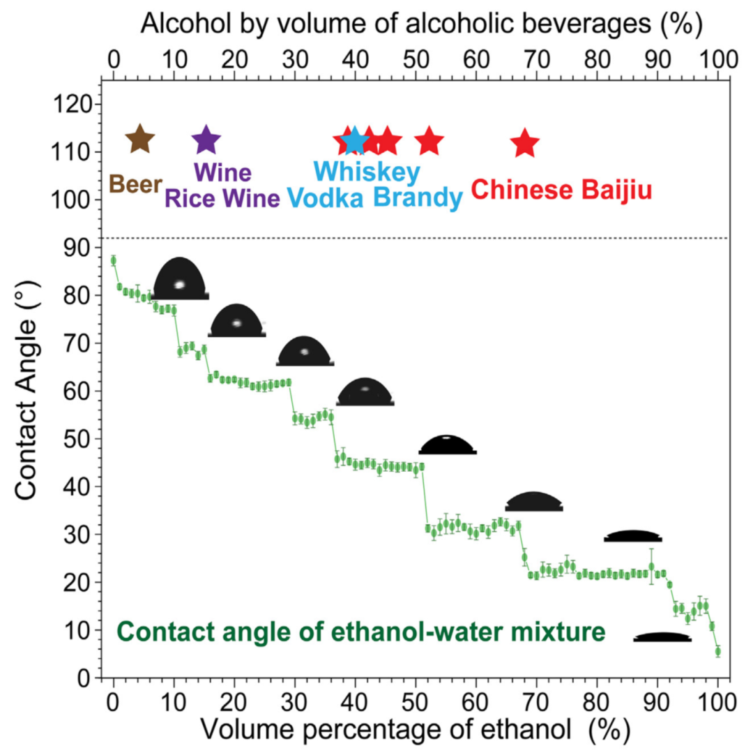 随后,两人和他们的团队前往实验室,测量了一系列逐渐增加酒精浓度的水溶液的接触角。