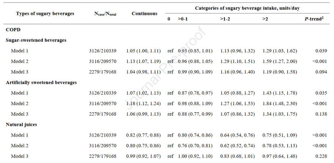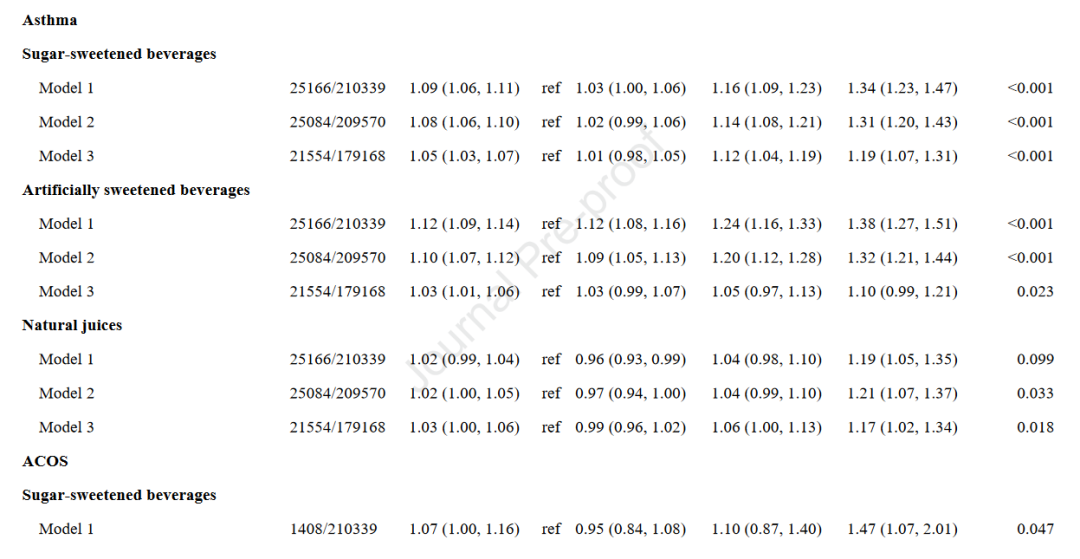 该研究结果发表在The American Journal of Clinical Nutrition,题为Associations of sugary beverage consumption with chronic obstructive pulmonary disease (COPD), asthma, and asthma-COPD overlap syndrome: A prospective cohort study。