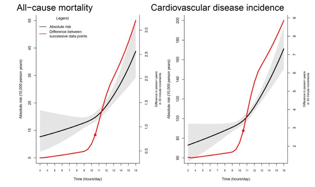 研究还分析了久坐时间的影响,结果发现,如果你每天坐的时间少于10.5小时,那么走相同数量的步数,你的心脏病风险会比那些每天坐超过10.5小时的人更低。