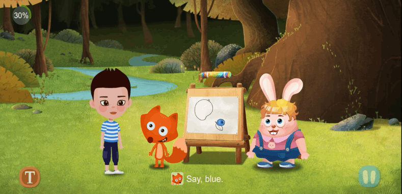在动画里,孩子也是故事里的一员,每当到了关键情节,就会要求孩子,说出指定的单词或句子,才能推动情节,继续往下看。