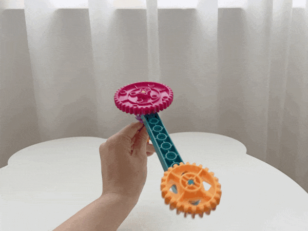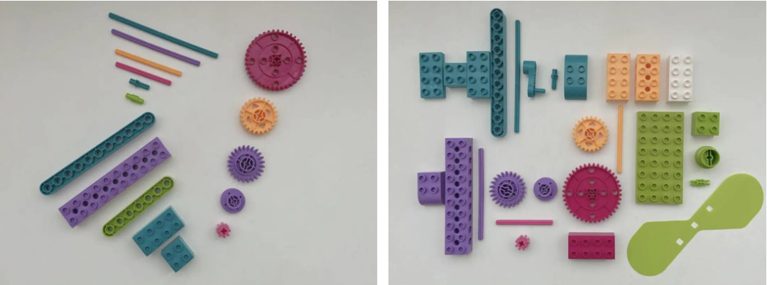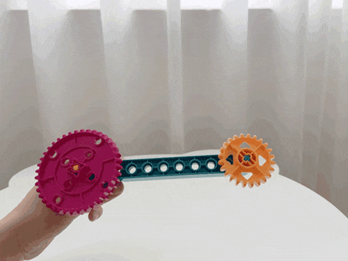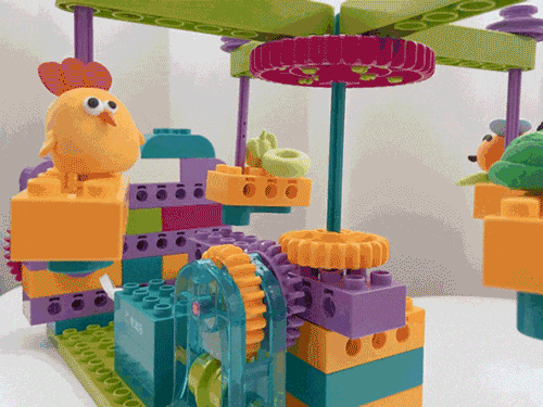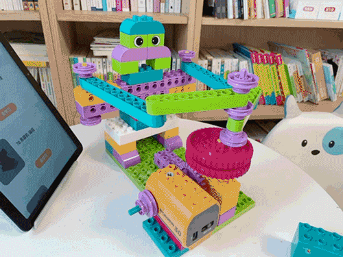结合机械积木熟悉基本的运动原理,可以让抽象概念具象化,小朋友是通过具体的材料而不是抽象的命题来建立知识,可以获得更直观、有趣的感受。