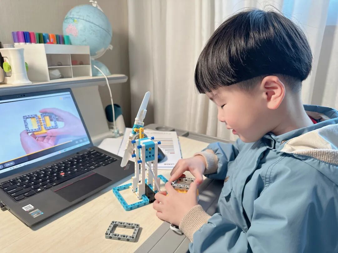 就我们家团子上的课来说,一节课从积木搭建到图形化编程,把脑海中的构思的东西搭建出来,非常需要孩子集中注意力去完成,从头到尾沉浸式体验!