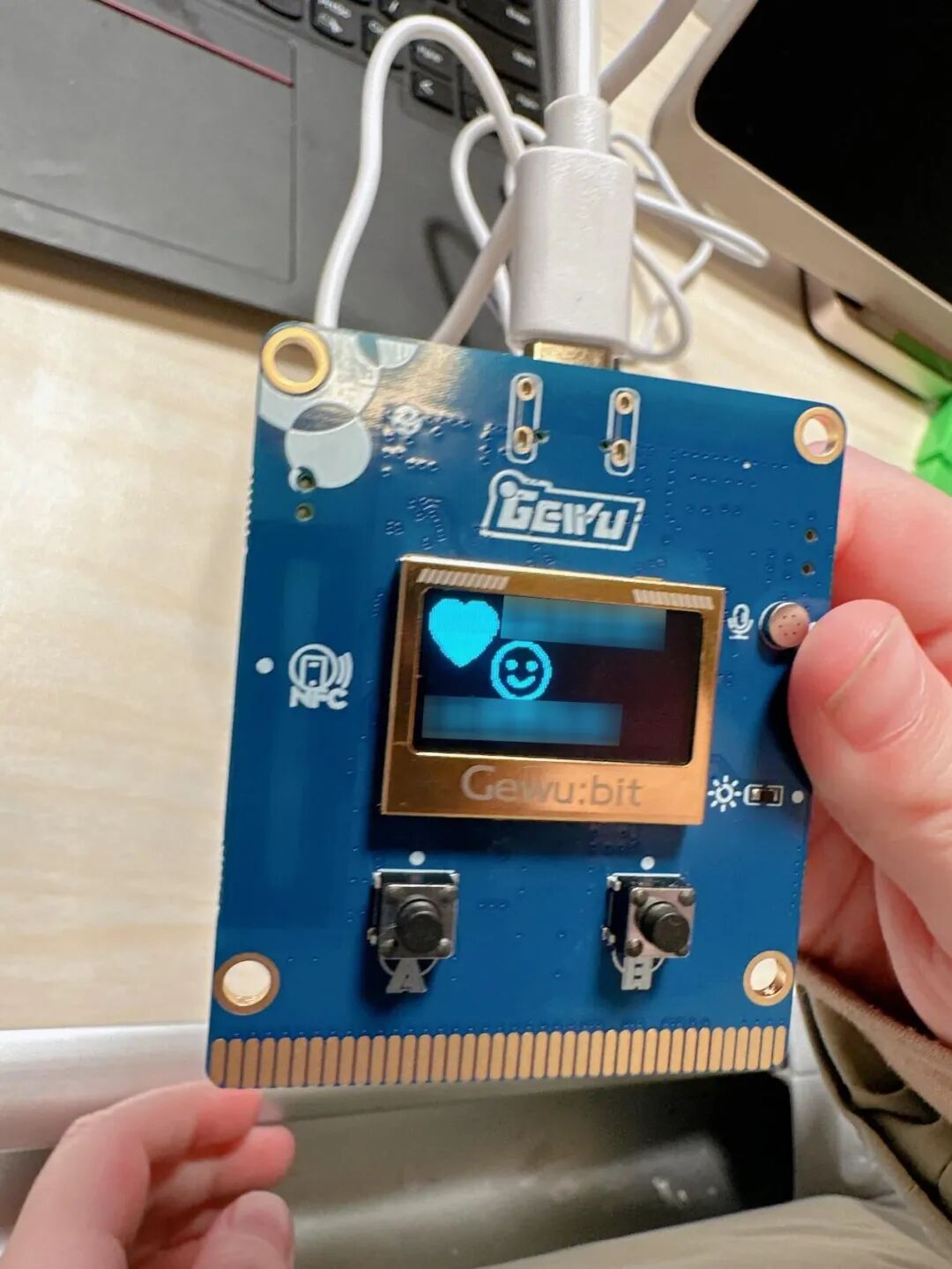 第一节是要做一个「电子名片」,编程之后屏幕上会出现自己的名字和漂亮的图案。