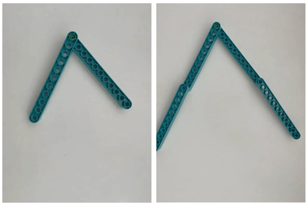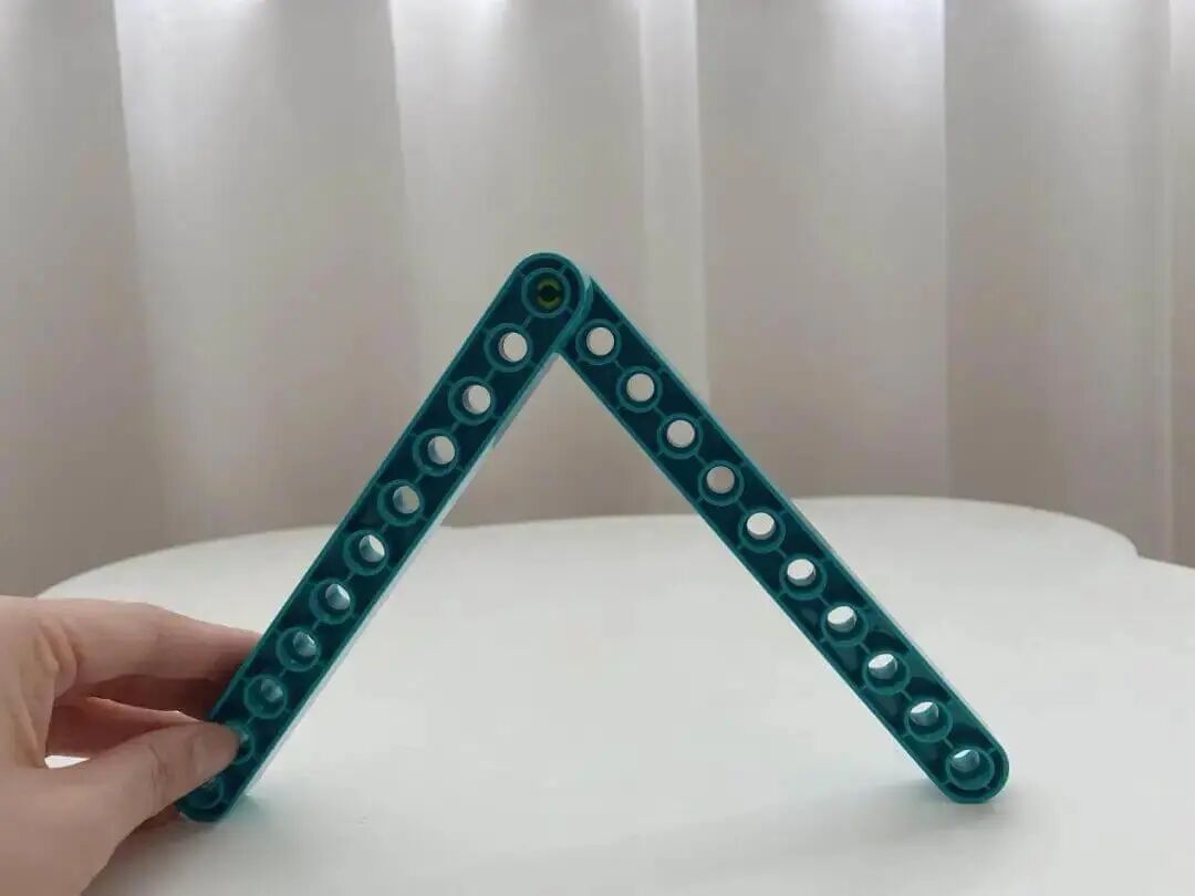 我们改变积木梁的长短,发展角的大小,跟两条边张口的大小有关,跟两边的长短无关👇