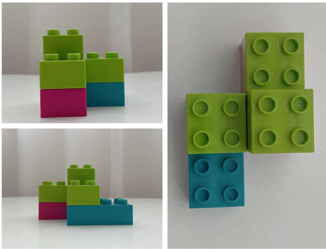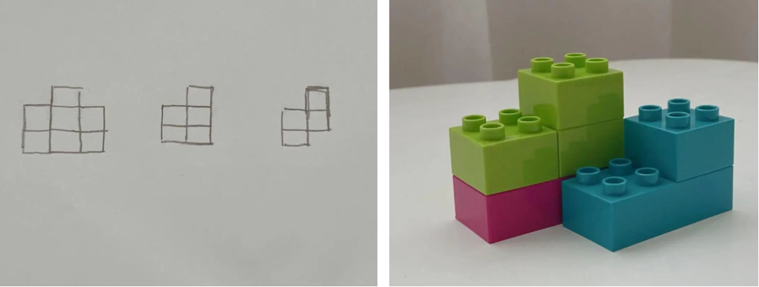 孩子们根据积木的摆放,直接能观察到不同视角的平面图形👇