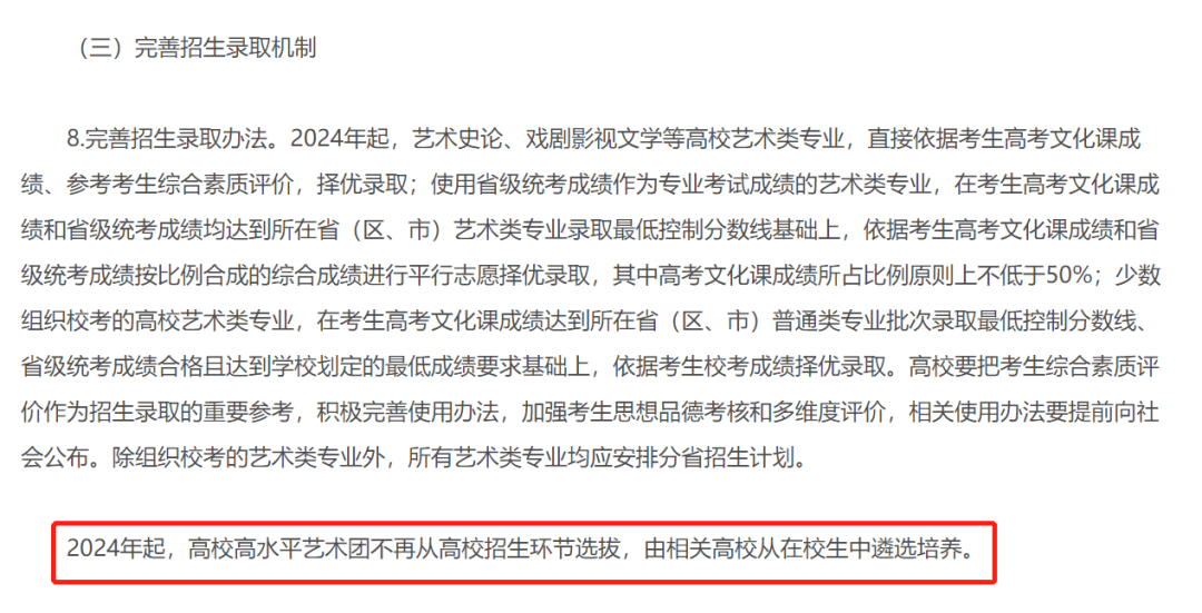 2024年,也就是从起,高校高水平艺术团不再从招生环节选拔👇
