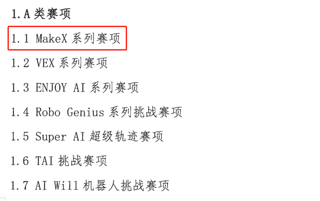 就拿中国最具国际影响力的机器人赛事品牌 MakeX 来说,它在教育部认证的白名单竞赛清单里,A 类赛事中,排名在第一位,国家级证书含金量非常高,在国内重点学校都有很大认可度。