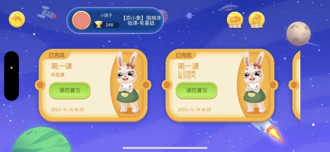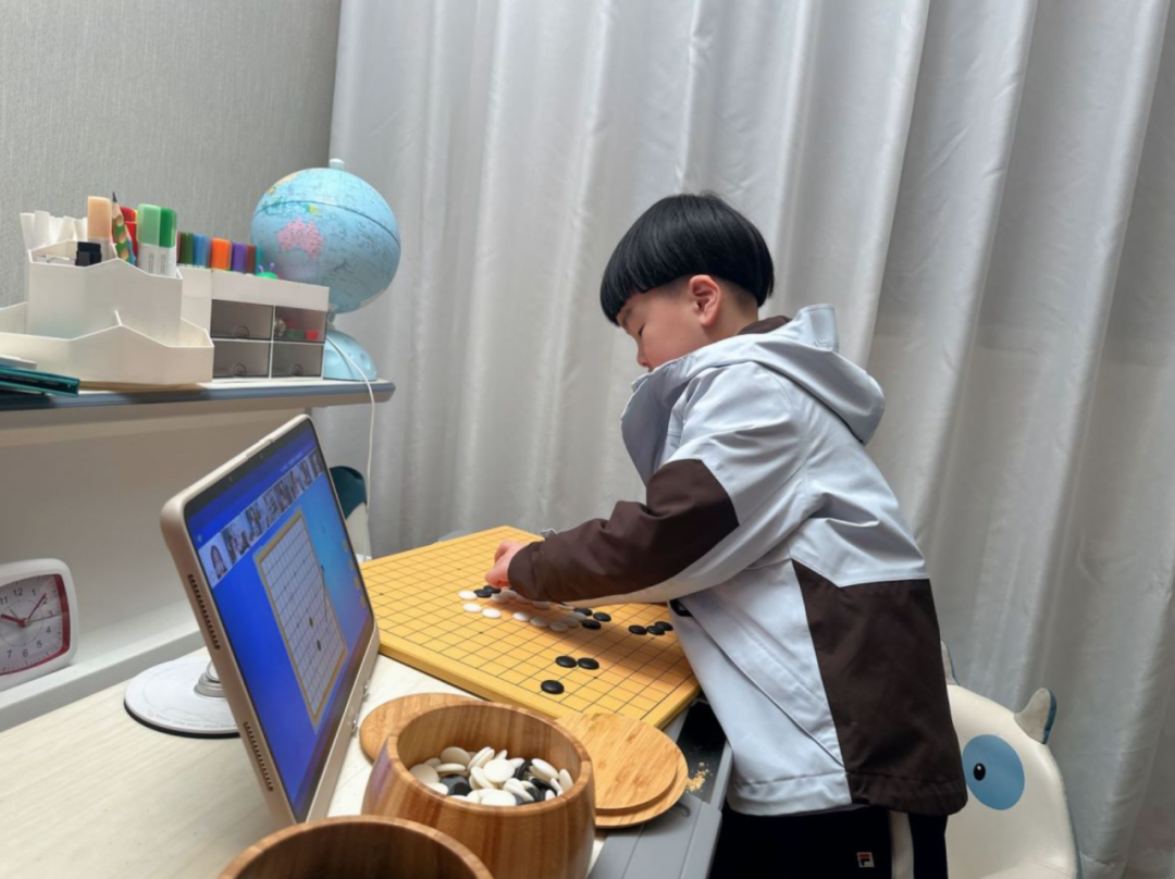 实际上团子第一次上围棋直播课时,即使是隔着屏幕比较拘谨,团子这“社牛娃”一开始连自我介绍都很害羞,但上了几次熟悉了线上的教学模式,和其他 5 个小朋友一起学习、对弈后,现在在课堂上非常积极大方,每次得到的小奖杯都是最多的。