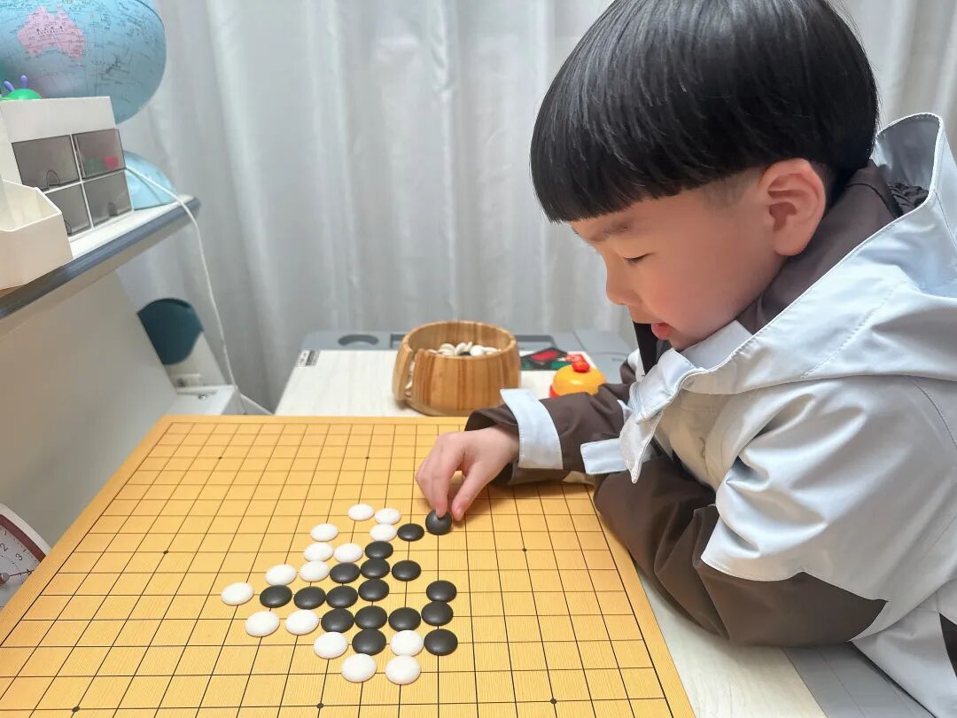 现在棋类也进幼儿园了,团子的幼儿园就是每天早上8:30-9:30是自由活动时间,活动就是找小朋友一起玩各种棋类游戏+搭建类的游戏,据团子的老师说,现在小团子每天早上都会选和同学下围棋👇