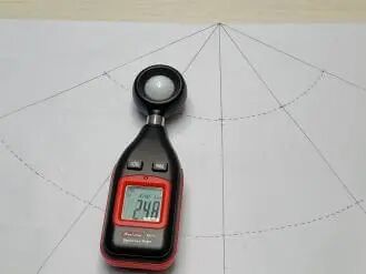一般来说,台灯的照明距离在灯中心周围25cm-35cm的范围,而我对大路灯的照明范围要求肯定是要比台灯高的多,所以测评的时候我就以原点、以及30cm为最小光源距离点来进行照度的测试,同时测试50cm及100cm的亮度来进行对比。
