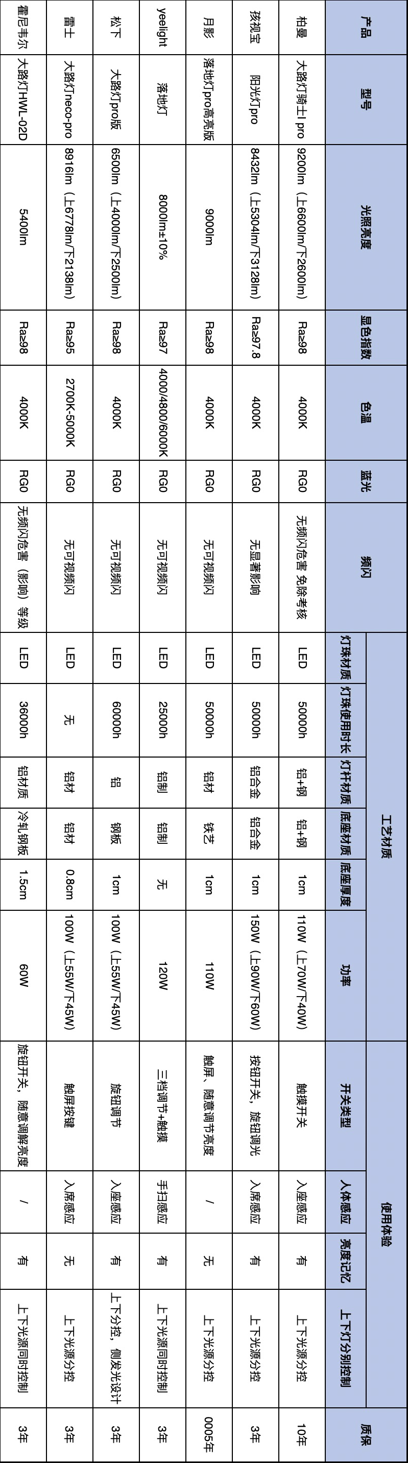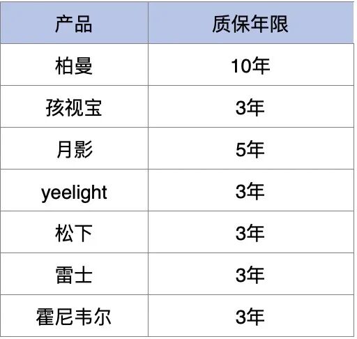 最后咱们再来比较一下各个大路灯的质保年限,毕竟是几千的东西,质保自然是越久越好。