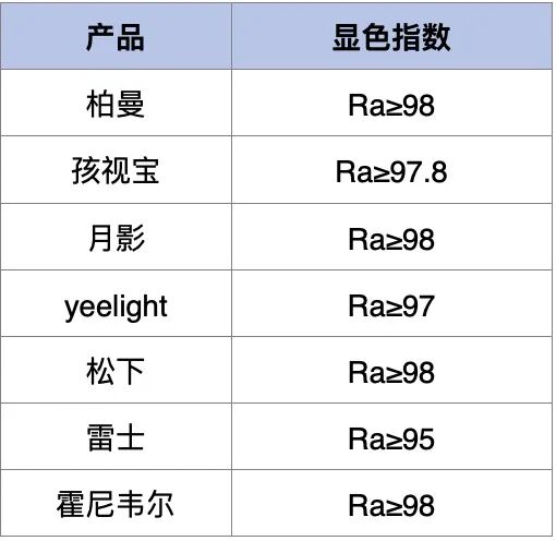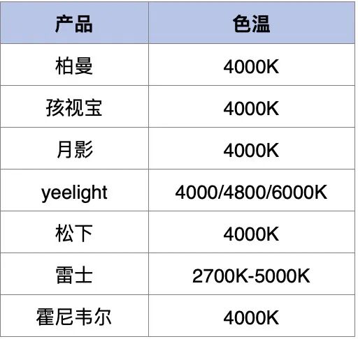 这7款产品都能满足 4000K 的色温标准,其中yeelight和雷士可以做到不同色温的调节,可用于不同场景。