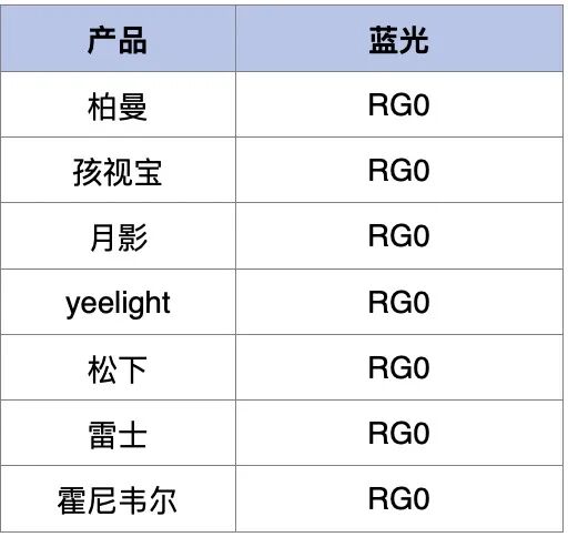 国际标准 IEC/TR 62778-2014 把视网膜蓝光按照危害风险,从低到高排序分为RG0、RG1、RG2和RG3四个级别。