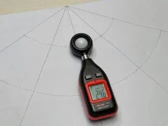1.1 使用用照度仪进行不同距离的测试,测试光照强度和光照均匀度、以及照明范围;
