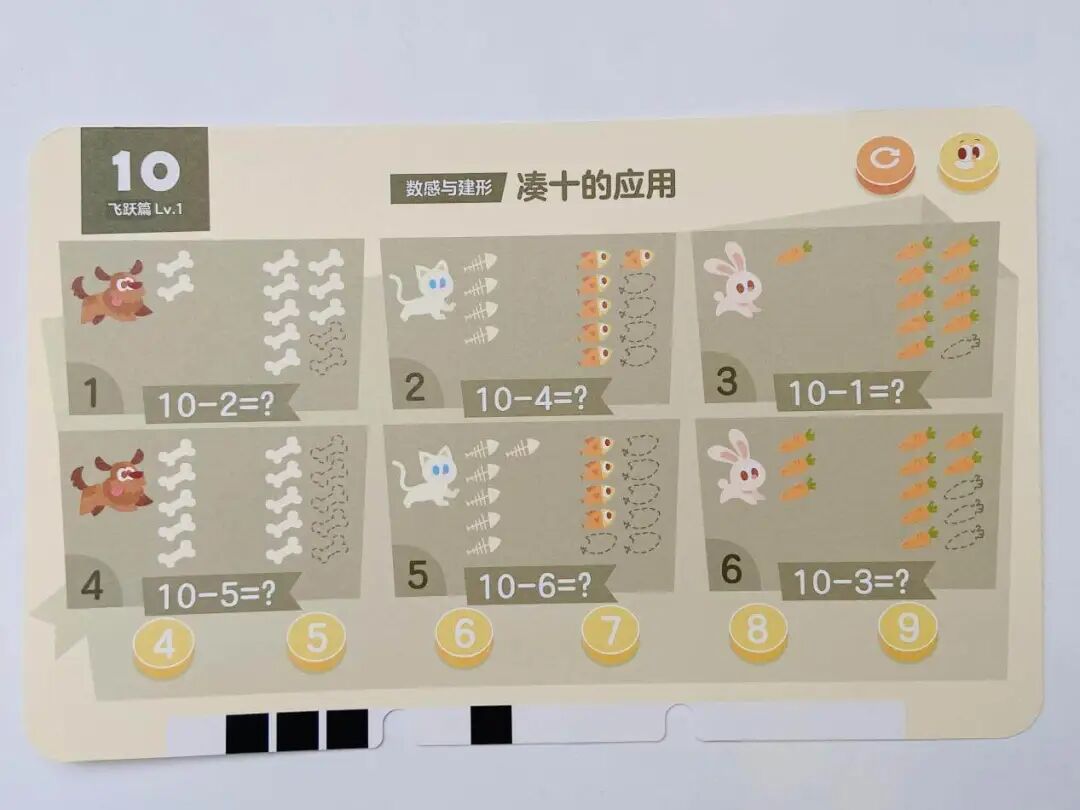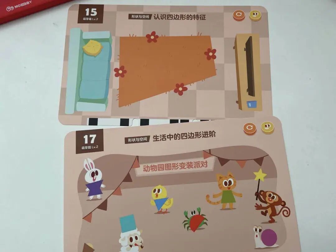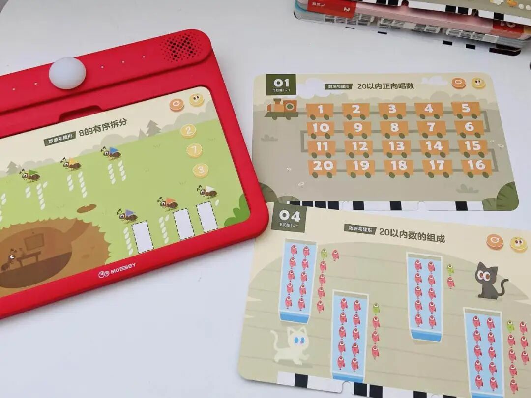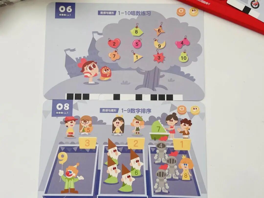 A 摩比数学包每个级别对应一个年龄段,卡片可以反复玩。建议孩子每天学1-3张(正反面总计 6 面的习题),如果孩子兴趣高、接受能力强,多学多练也是很好的哦!