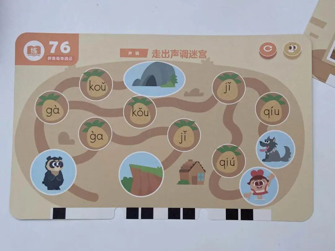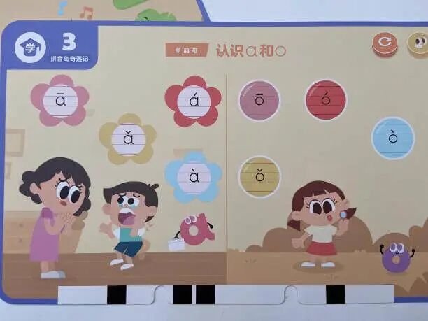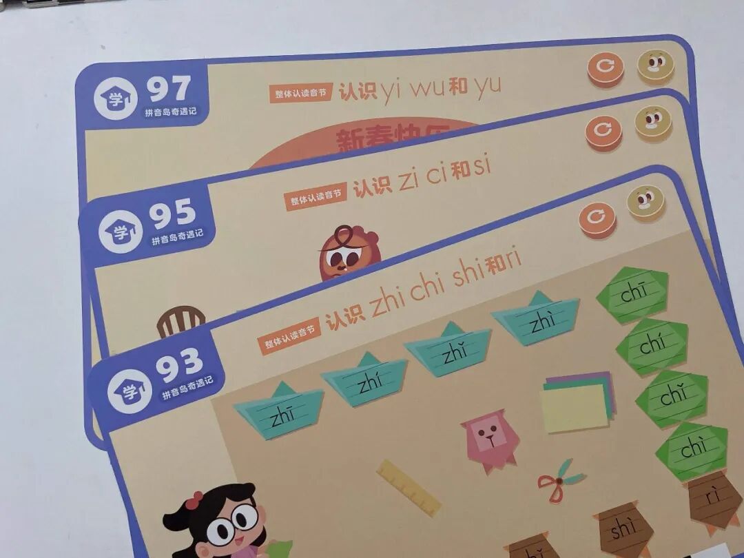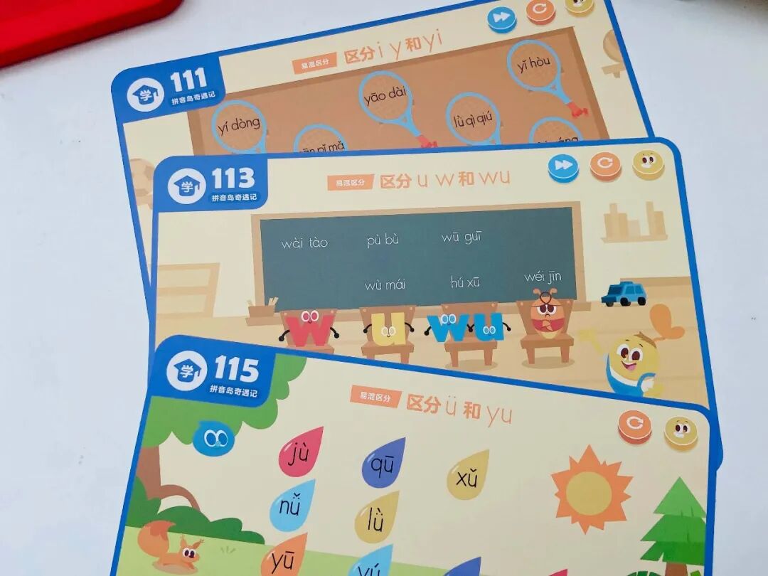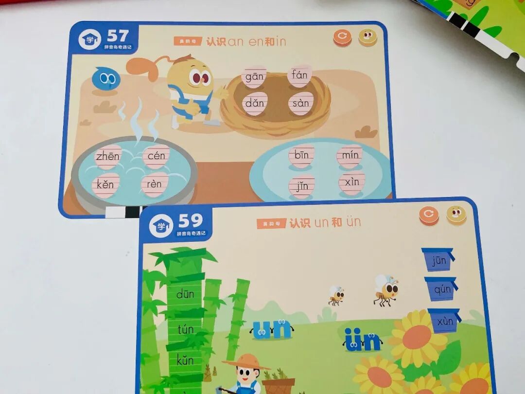 一个是拼音岛奇遇记(学拼音),覆盖了 6 个单韵母、8 个复韵母、1 个特殊韵母、9 个鼻韵母、16 个整体认读音节。