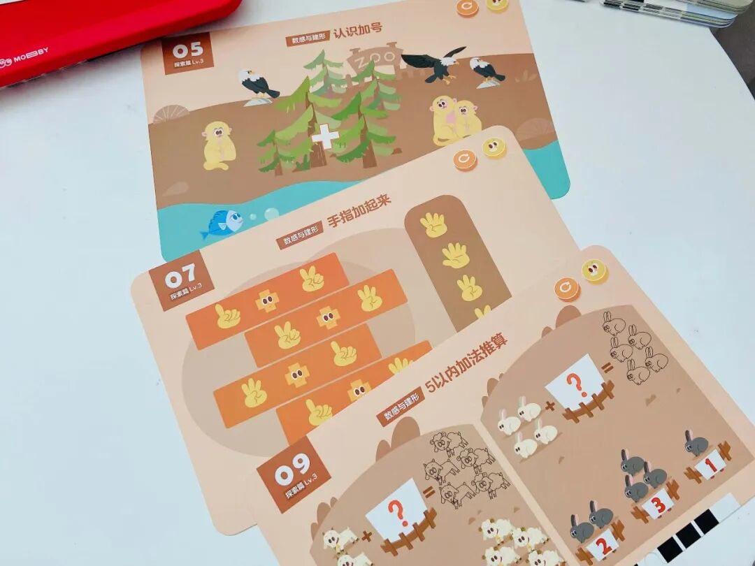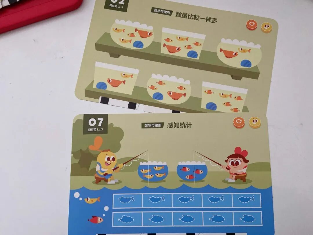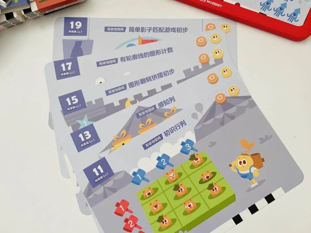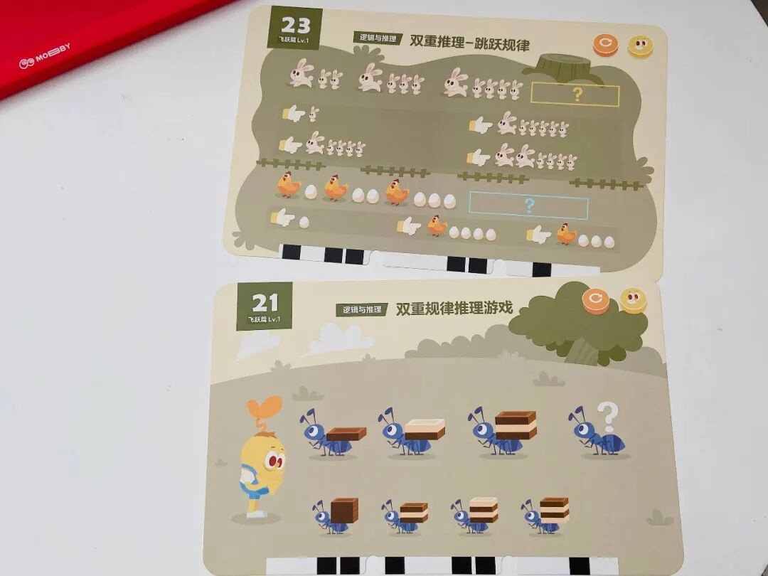 光这一个知识点,摩比就用了 8 张题卡来讲,不用你教,孩子做完秒懂还能举一反三!(这大概就是在数学启蒙上我们要实现的终极目标了😂)