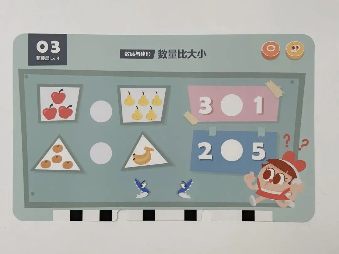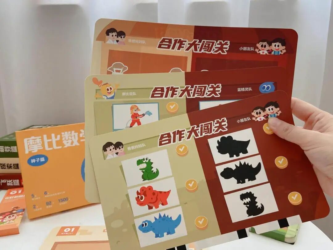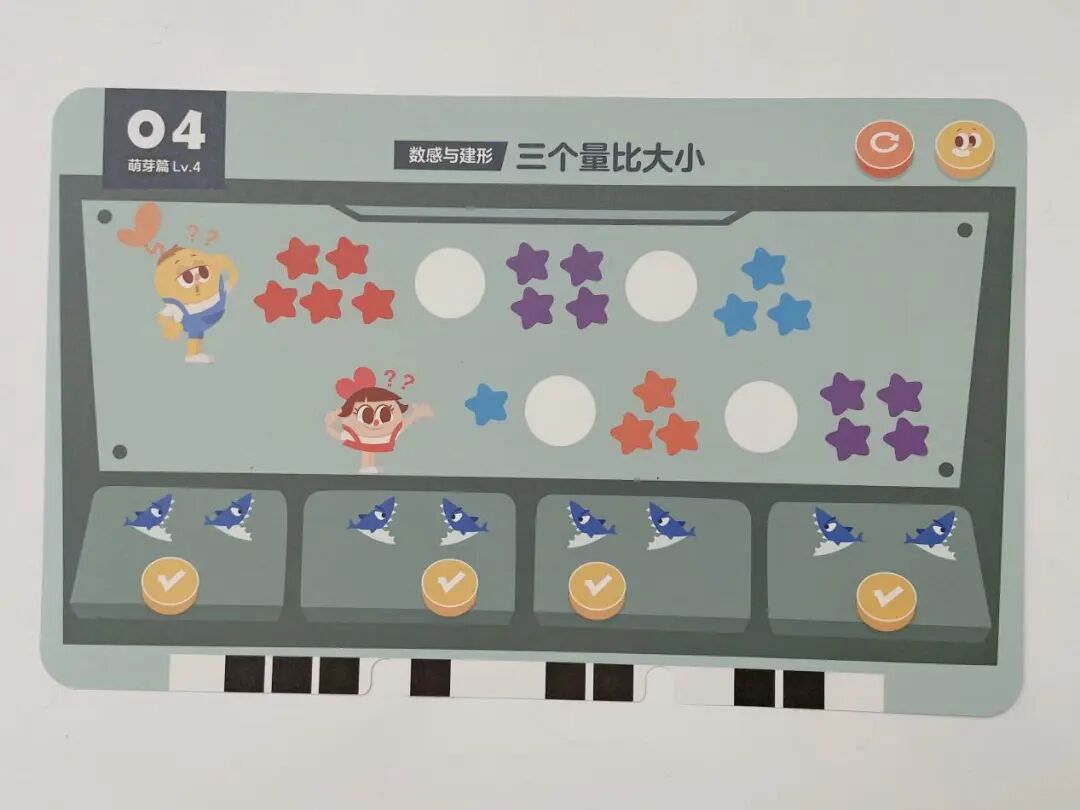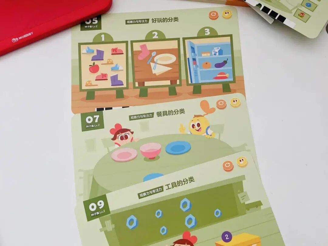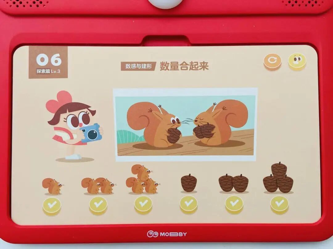 光这一个知识点,摩比就用了 8 张题卡来讲,不用你教,孩子做完秒懂还能举一反三!(这大概就是在数学启蒙上我们要实现的终极目标了😂)