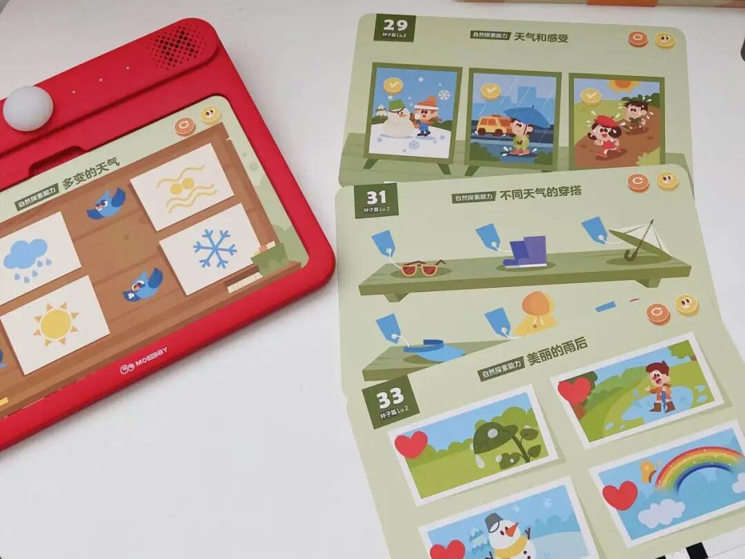 因为,摩比的思维机已经全面升级为了启蒙机,价格也是水涨船高(差不多有 50% 的提价),贵了一半左右,但是我觉得内容上的升级却没有很大,只是多了一些小猪佩奇、或迪士尼为主题的题卡。