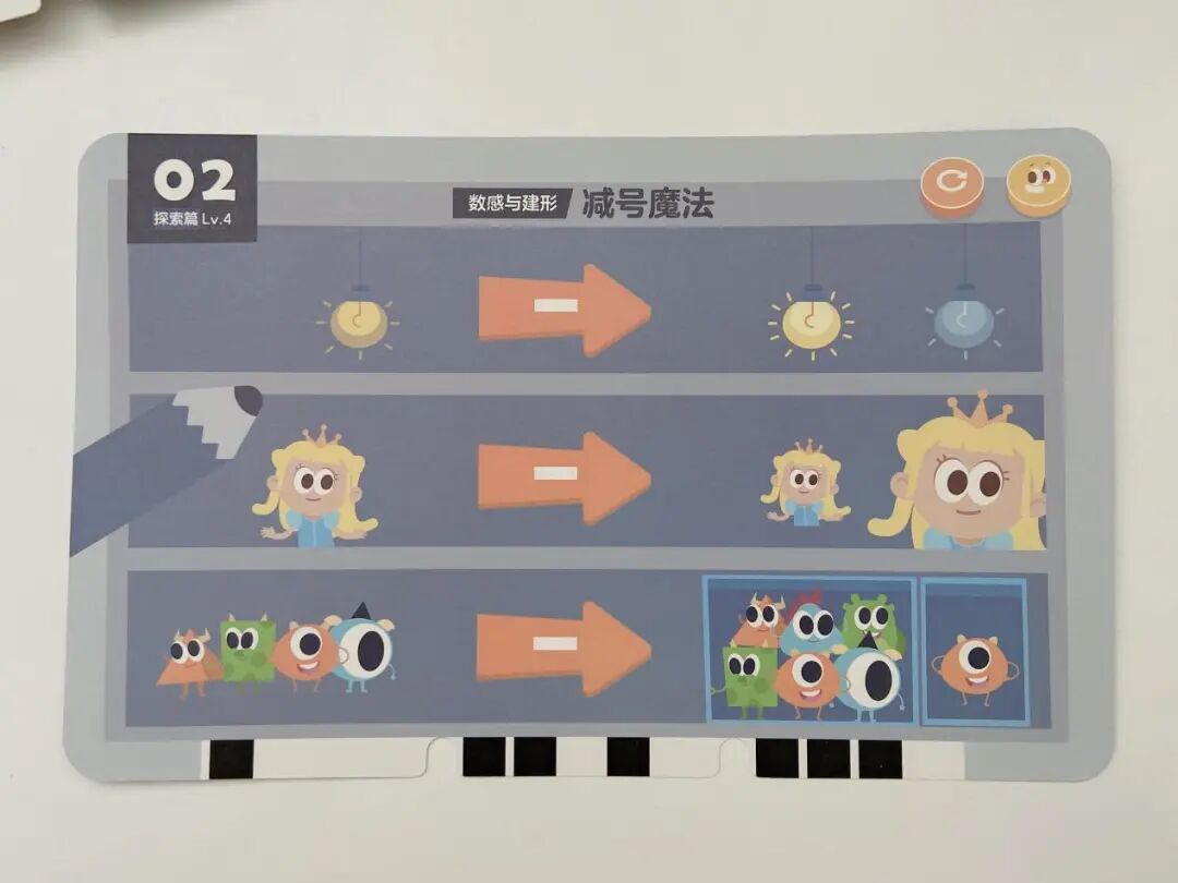 亮着的💡经过「-」魔法会变暗,公主👑经过「-」魔法会变小,5 只小怪兽经过「-」魔法就只剩 1 个啦!