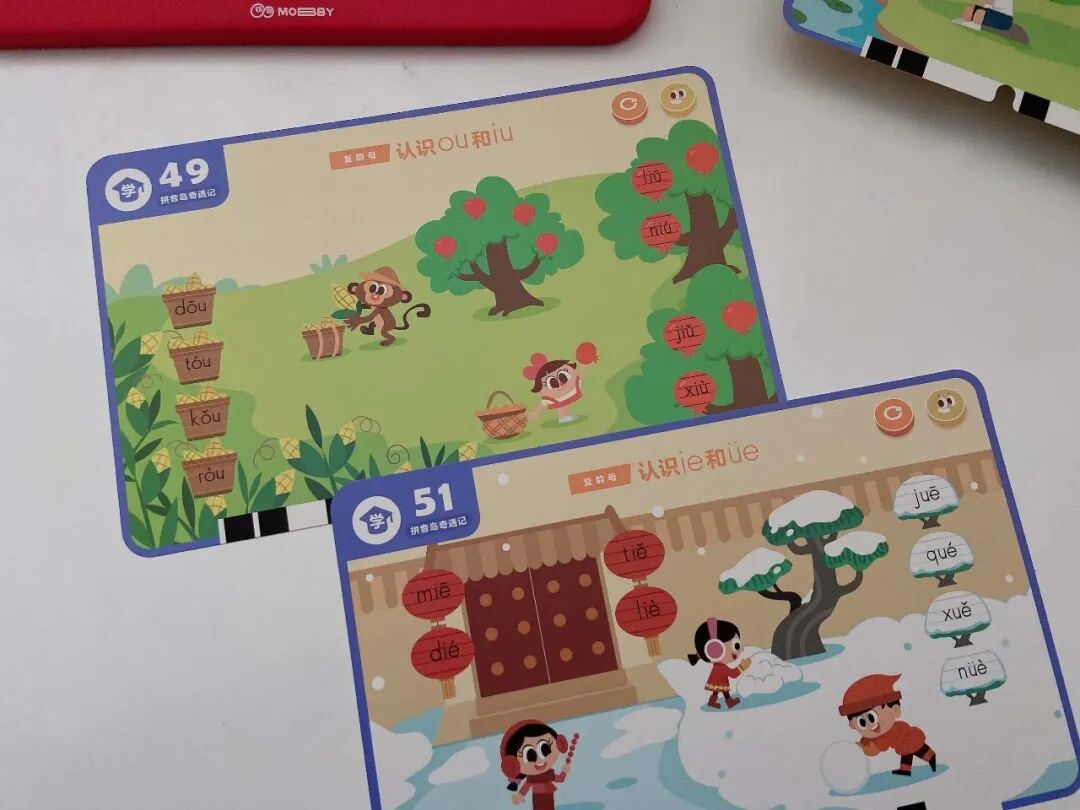 摩比拼音包采用了形象记忆、口诀记忆、联想记忆、对比记忆等多种记忆方法,搭配 10 种游戏类型,能让孩子听得有趣、学得有效,记得又快又牢!