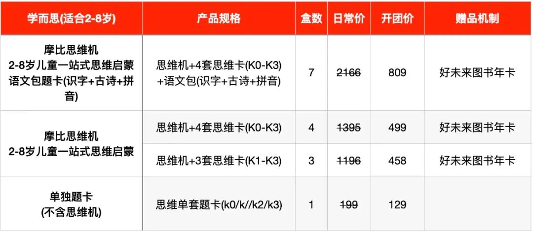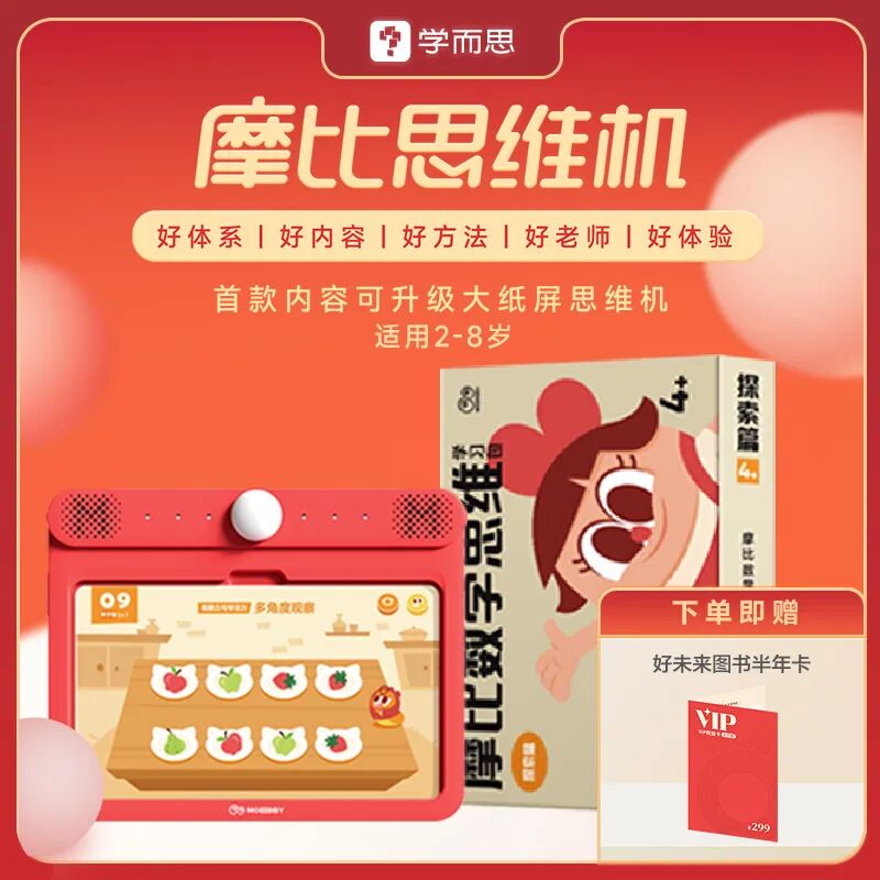 而经典款的思维机,可能之后会下架,所以,这也肯定是咱们最后一次开团摩比思维机了。有需要的妈妈,这次可以抓紧时间入手啦,因为摩比思维机算是现在最低幼的思维培养产品,我也一直建议,在摩比思维机入门后,再去尝试诸如火花思维、小侯 AI 这样的思维课~