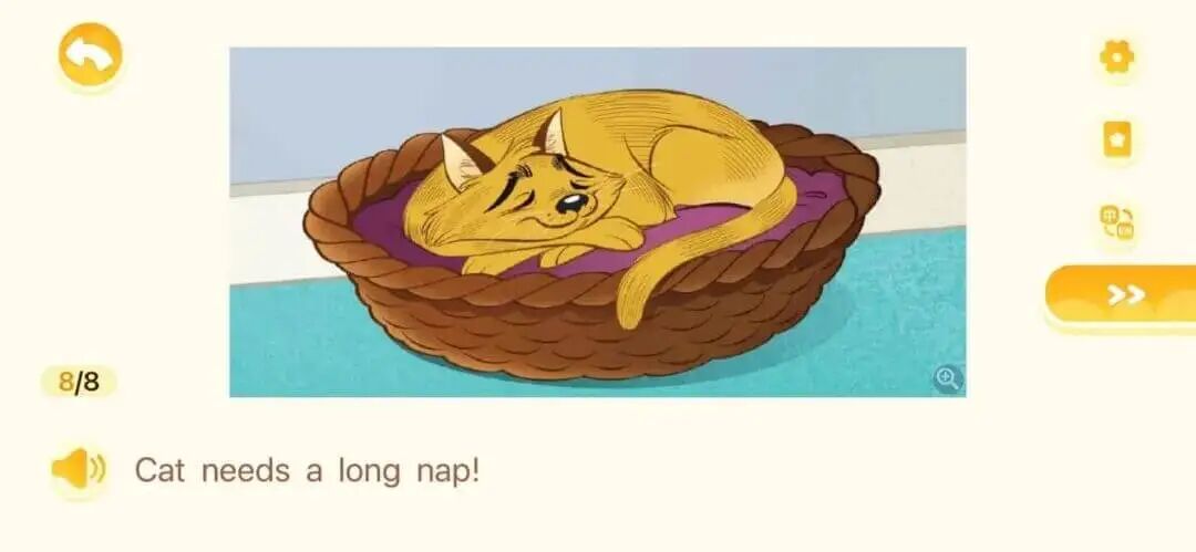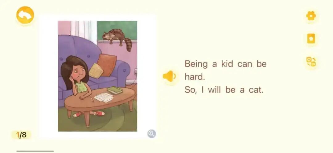 到了 C 级,比如 I Want to Be a Cat,每句有 6 个词,首页还出现了两句话👇