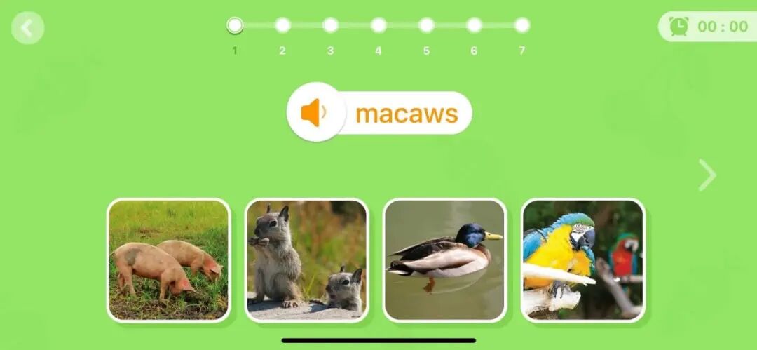 练——也就是Quiz 模块,先来几组看单词听读音选图片的游戏,考察单词词义的掌握情况👇