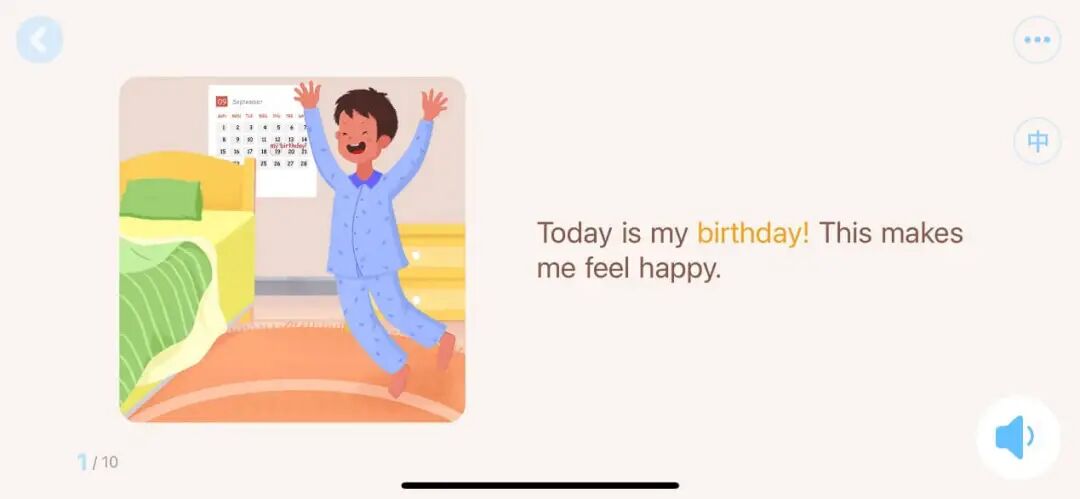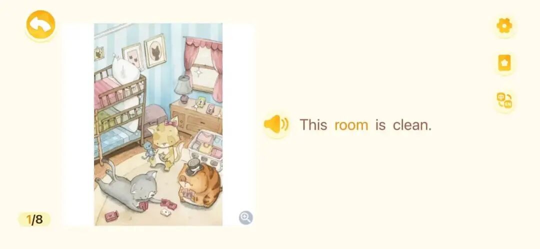 听——娃跟着 ABC reading 里标准的美式真人发音,配合图片,一页一页地看、听绘本,先让孩子建立语音和图片之间的关联,积累听力词汇,初步熟悉绘本内容👇