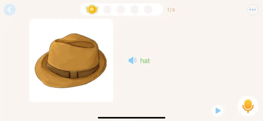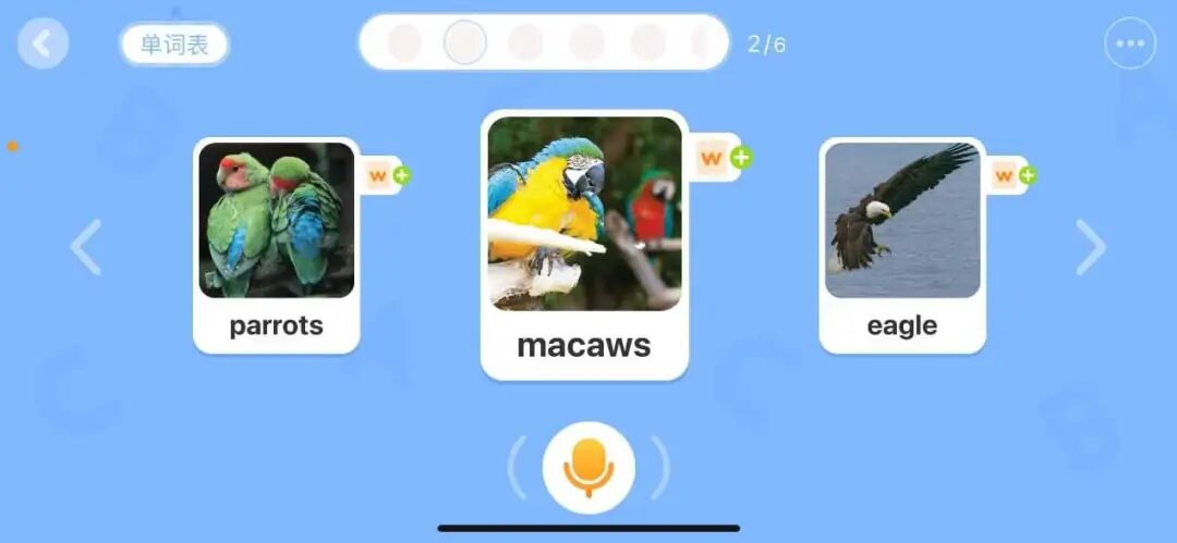 其次,进行单词“跟读训练”,先听一遍标准的美式发音示范,然后再让孩子进行模仿跟读👇