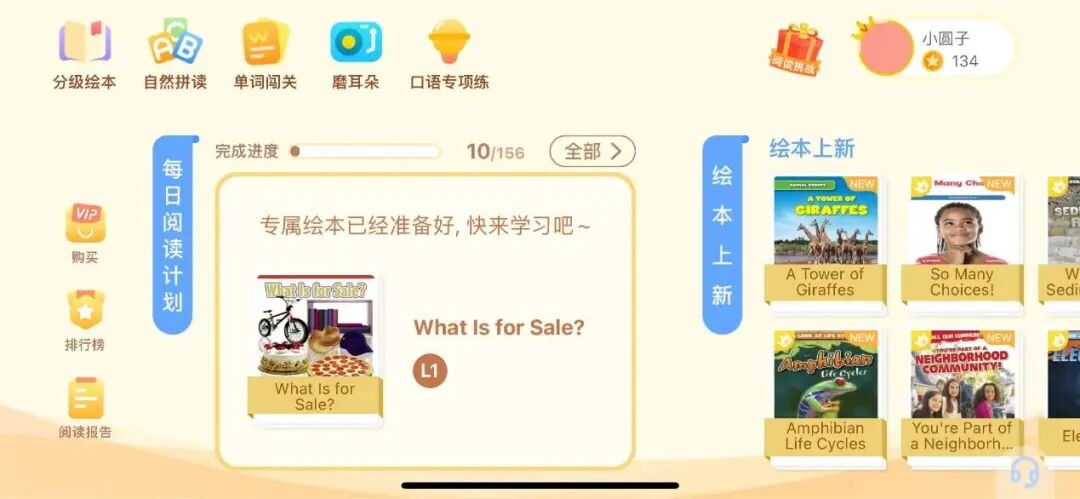ABC reading 可以说是本期测评的产品中最经验的一款(到底是学而思出品),不仅内嵌最适合孩子作为主线学习的RAZ原版,并且在内容的丰富度、学习的功能性和趣味性三个方面都做的相当不吃,可以说是真正做到了寓教于乐,让孩子“无痛刷分级”。