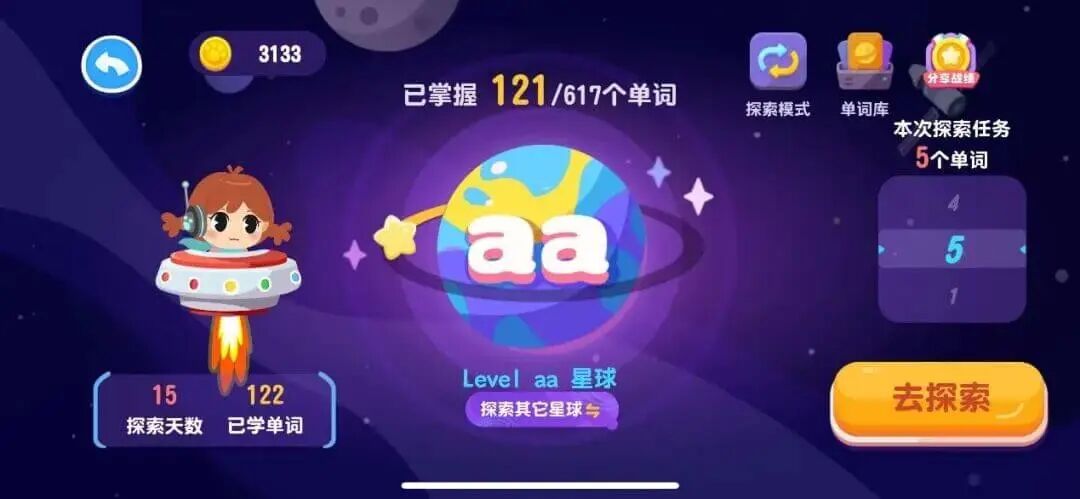 并且几乎所有的练习和巩固都是以游戏或是PK的形式进行,一个是“单词星球”,一个是“太空社区”。