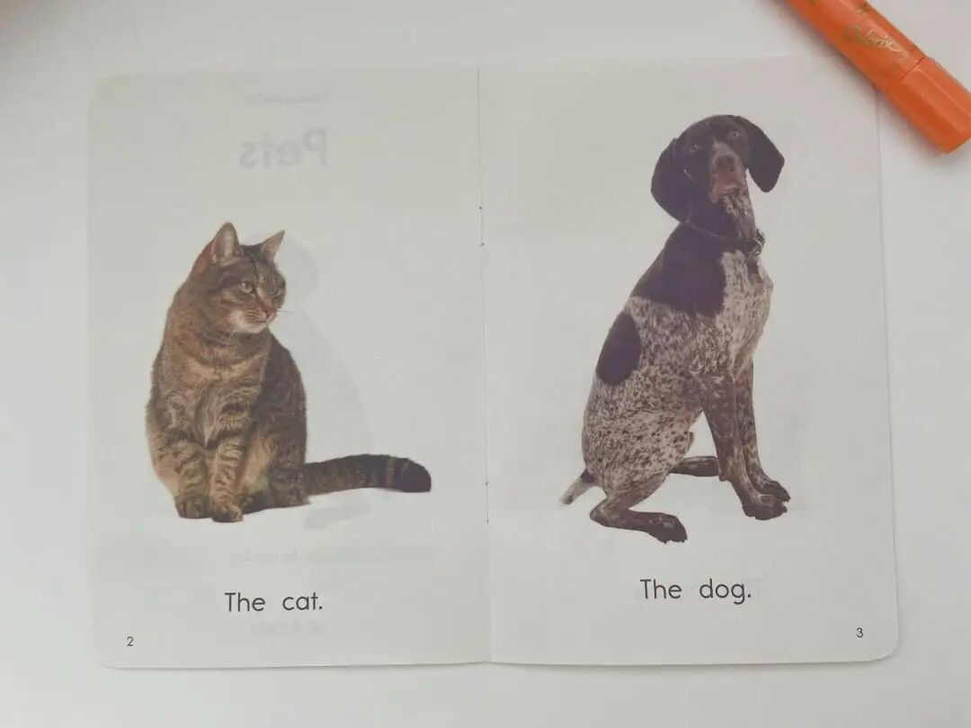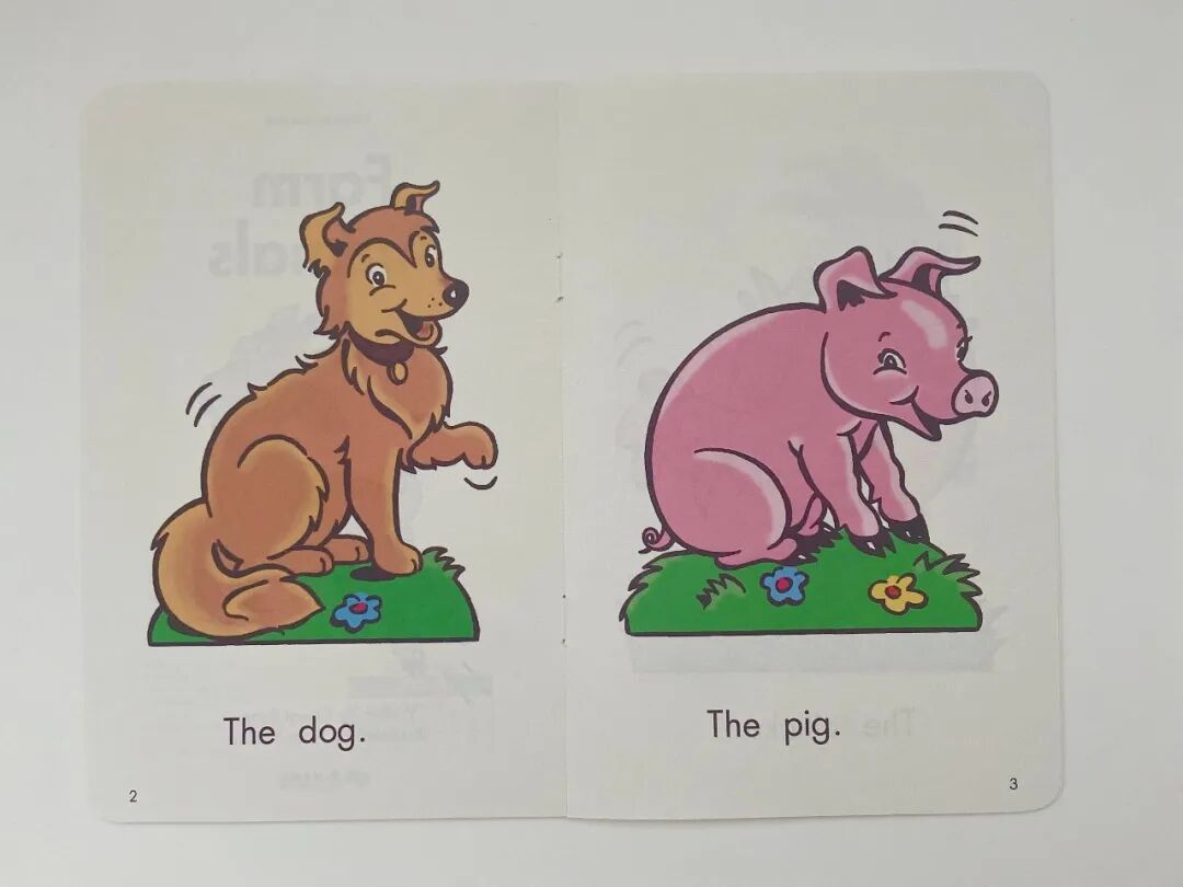 单词反复出现,句型逐步升级,比如第1本Farm Animals,出现“The dog.” 👇