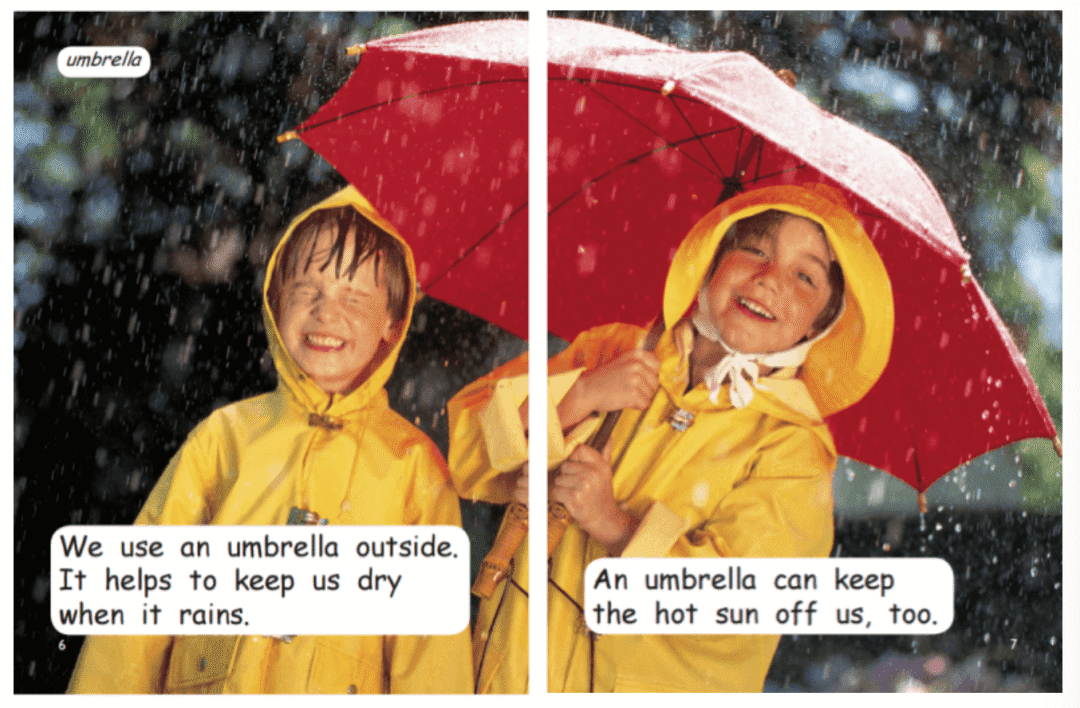 而且,非常用心的是,每一页都配了实物图来“解释”核心单词,所以碰到生词,孩子也可以通过图片来猜出词义,同时也能帮助孩子建立单词和图片之间的关联,加深对词汇的理解,帮助记忆👇