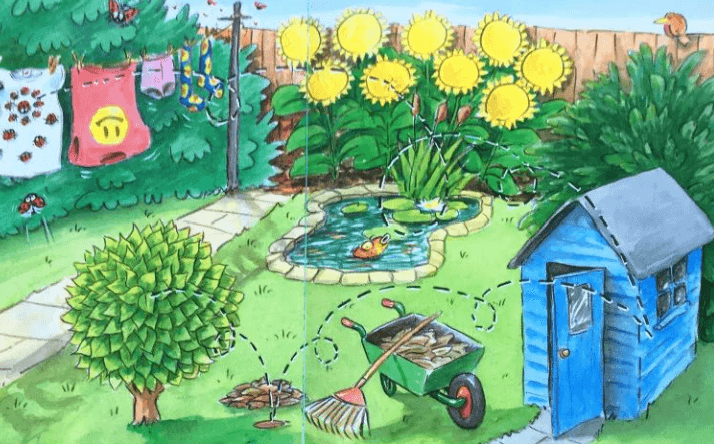 另外,大猫的特色是,每本书的后附有有趣的“图像思维导图”,引导孩子回忆整本书的内容并复述,实现“输出”层面的重复,比如Fly Away Home中的虚线表示瓢虫离开家的旅程👇