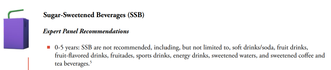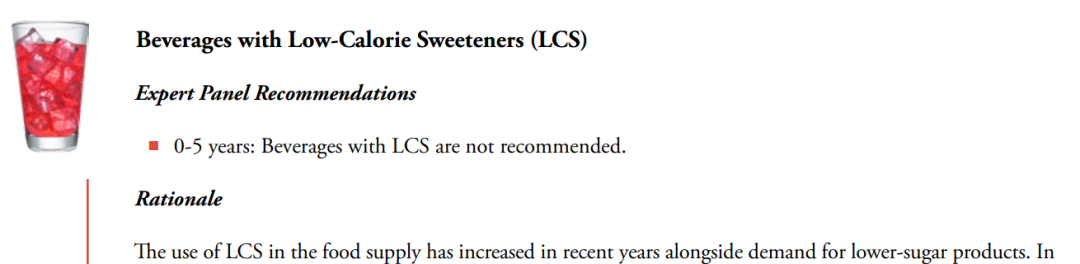 △美国4大权威机构共同发布的《幼儿期健康饮料共识指南》中,明确指出,不建议0-5岁儿童摄入含糖、甜味剂或含低热量甜味剂的饮品