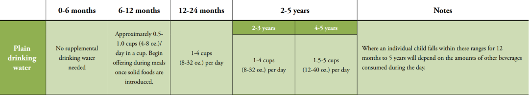 △《幼儿期健康饮料共识指南》中建议:1-3岁,每天1-4杯水;4-5岁,每天1.5-5杯水