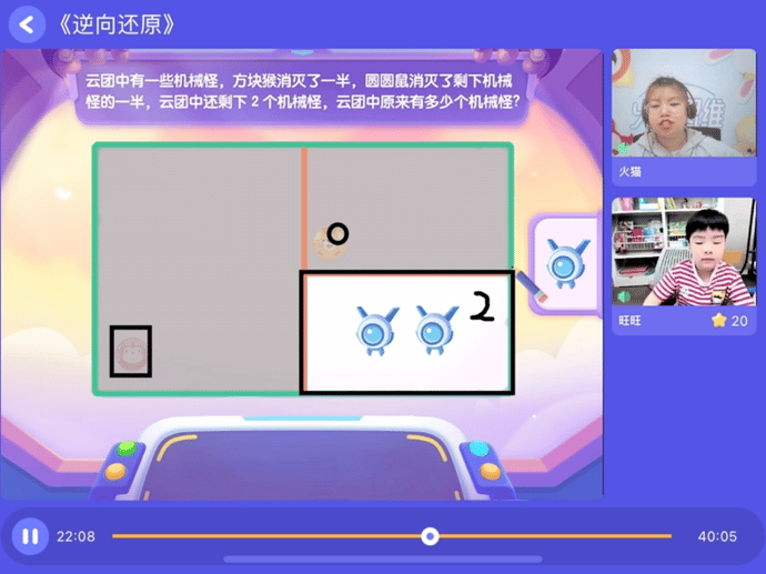 △小团子在画的内容是逆向还原,他当时其实是过去帮妹妹解决难题的,但是因为已经学到了 L5,小团子用的解法和老师都不一样了,用的“图形化思维”在解决问题