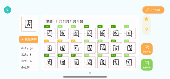 当然,一开始孩子可能很难自行判断,所以也可以用辅助的测评工具,引导孩子去思考——我写出来的字为什么和范例不一样?不一样在哪?是哪几个笔画出问题了?又要怎样改进?
