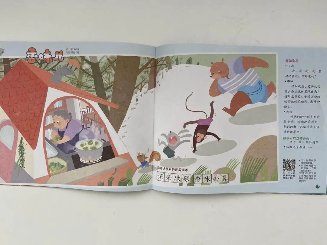 听的部分,让孩子跟着标准的美式真人发音,配合图片,一页一页地看、跟读绘本,让孩子建立语音和图片之间的关联,积累听力词汇,初步熟悉绘本内容👇