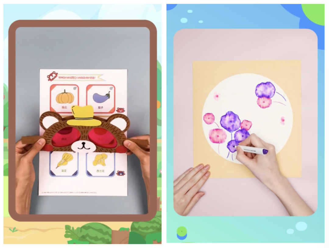 接下来,就可以在自由探索的同时,学习一些小小的美术知识和技巧啦~当然,如果只是给娃讲概念或是直接示范,孩子可能会觉得枯燥,也很难get到,这时候我们就可以借助一些工具来引导孩子。